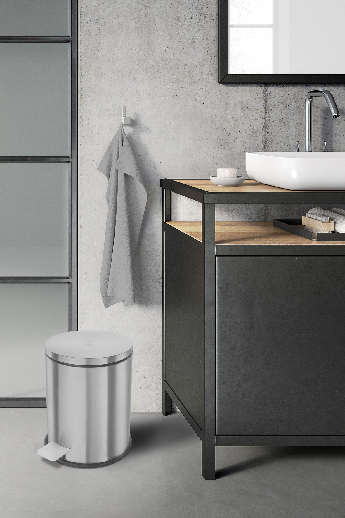 De kleine pedaalemmer in gesatineerd roestvrij staal met een inhoud van 3 liter is een must-have in elke badkamer. Hij heeft een uitneembare kunststof afvalemmer met draaggreep en het deksel sluit zachtjes dankzij het soft-close mechanisme.