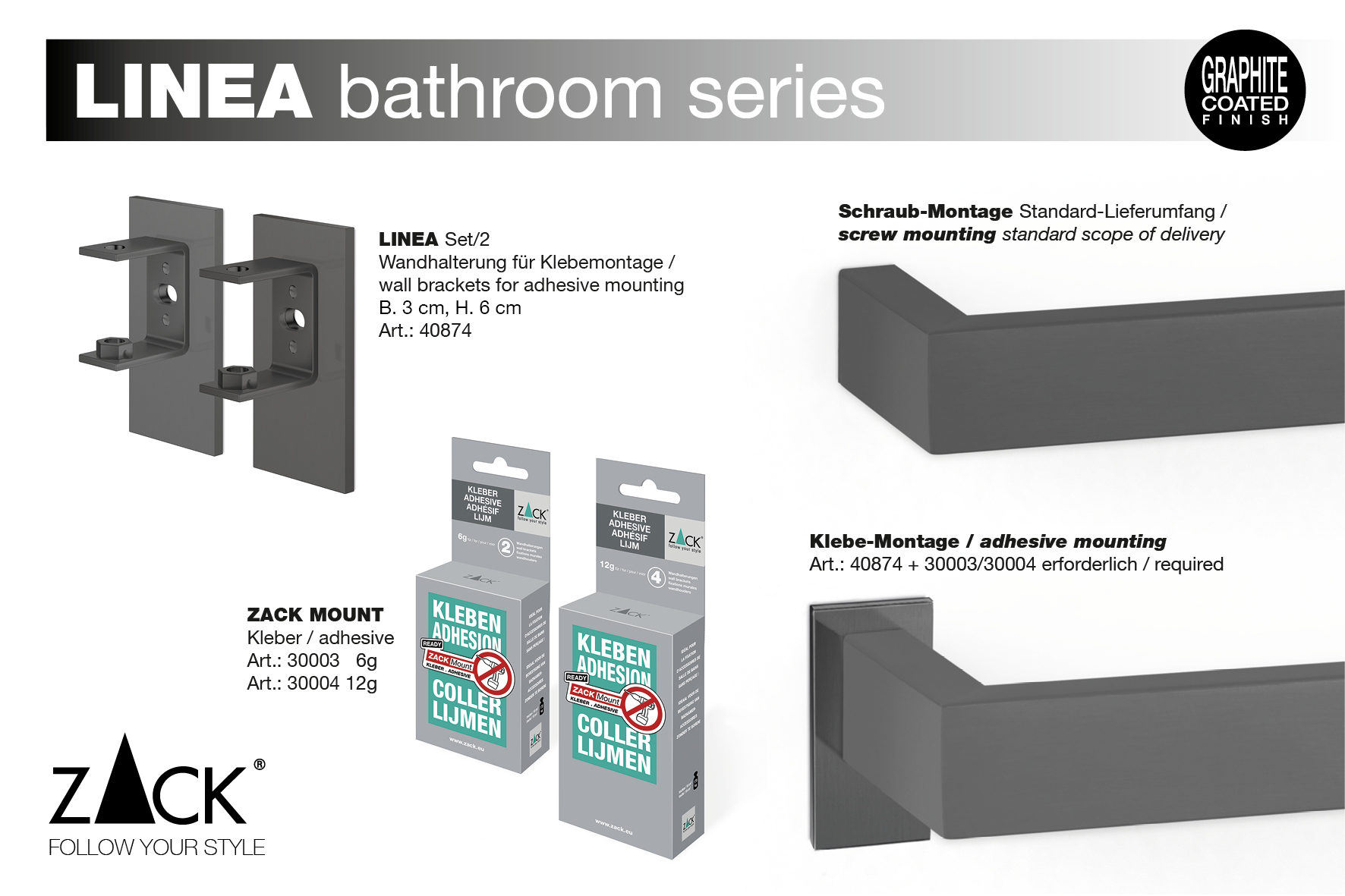 - Weitere ergänzende Accessoires der ZACK Design-Serie „LINEA“ sind erhältlich