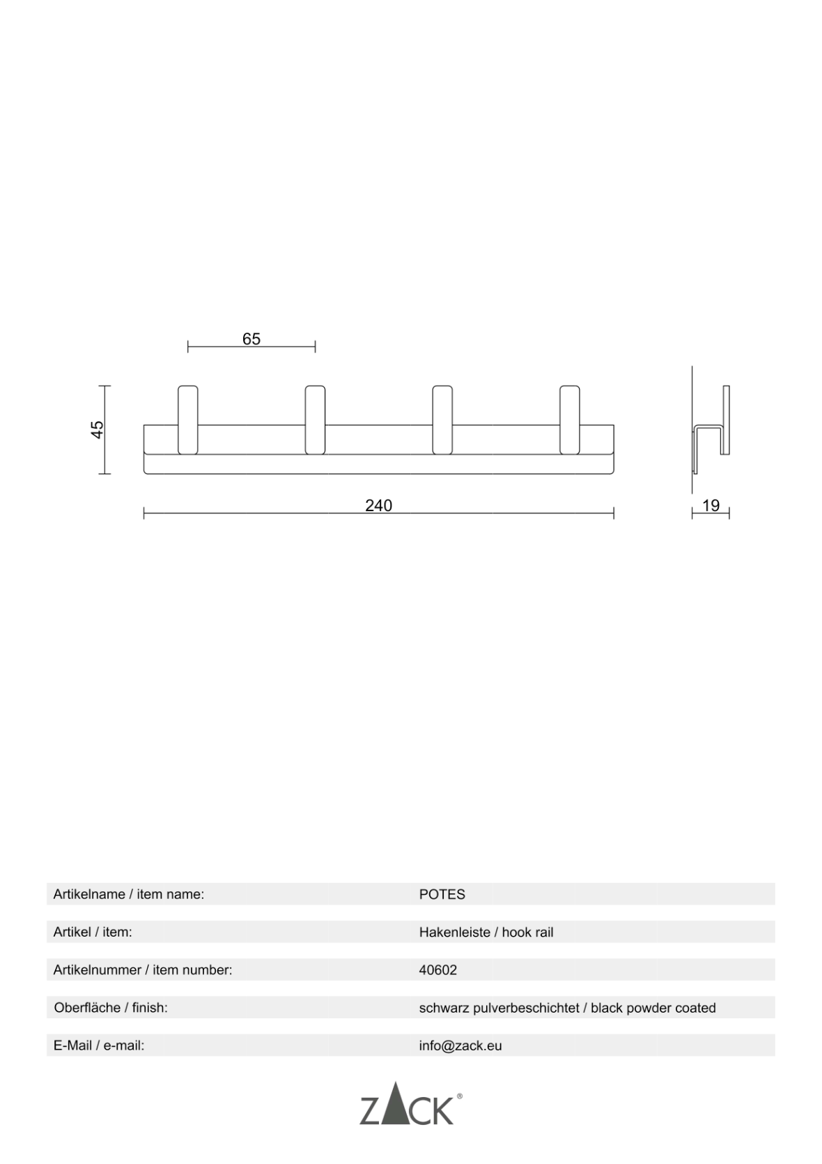 Produktinformationen "POTES" Hakenleiste, 24 cm
