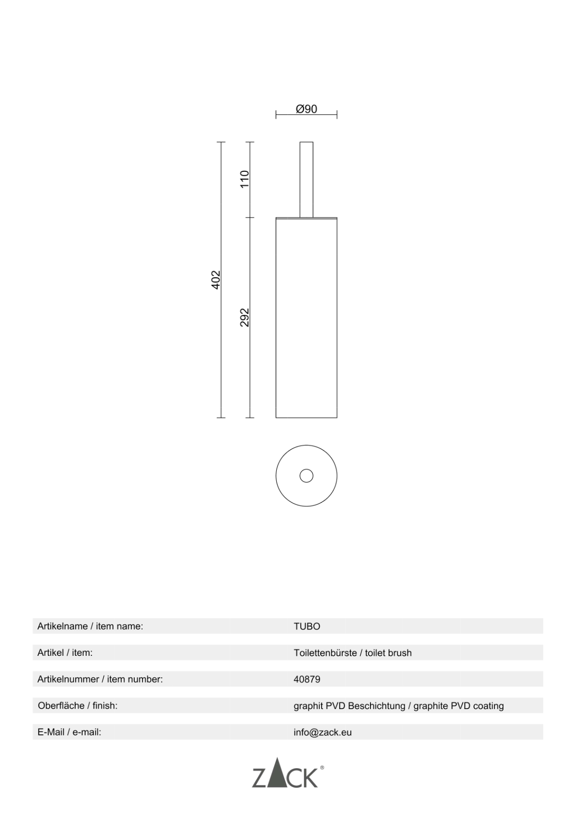 | Oberfläche: | graphite, PVD beschichtet |