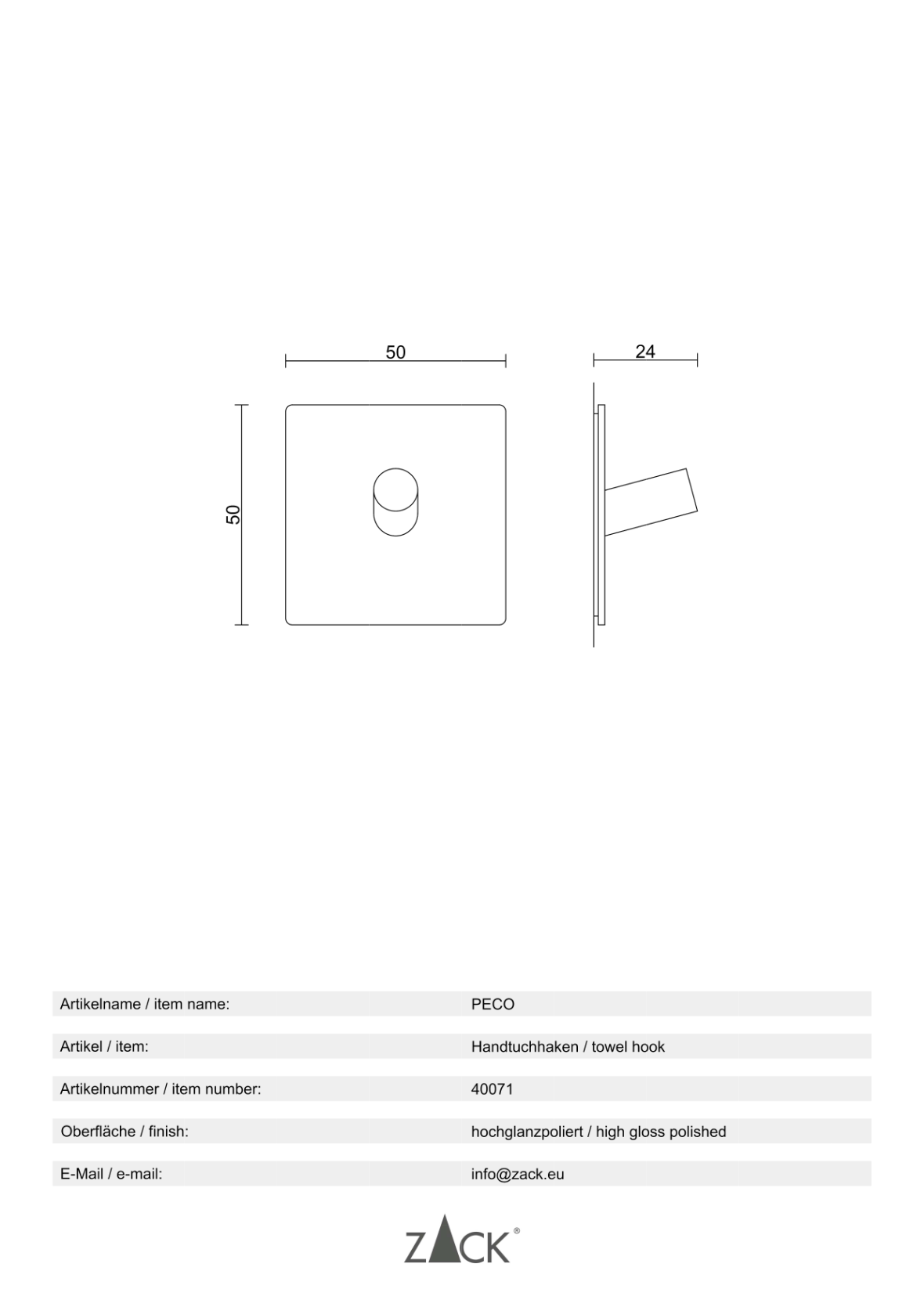 Productinformatie "PECO" handdoekhaak,vierkant, 5 cm, hoogglanzend