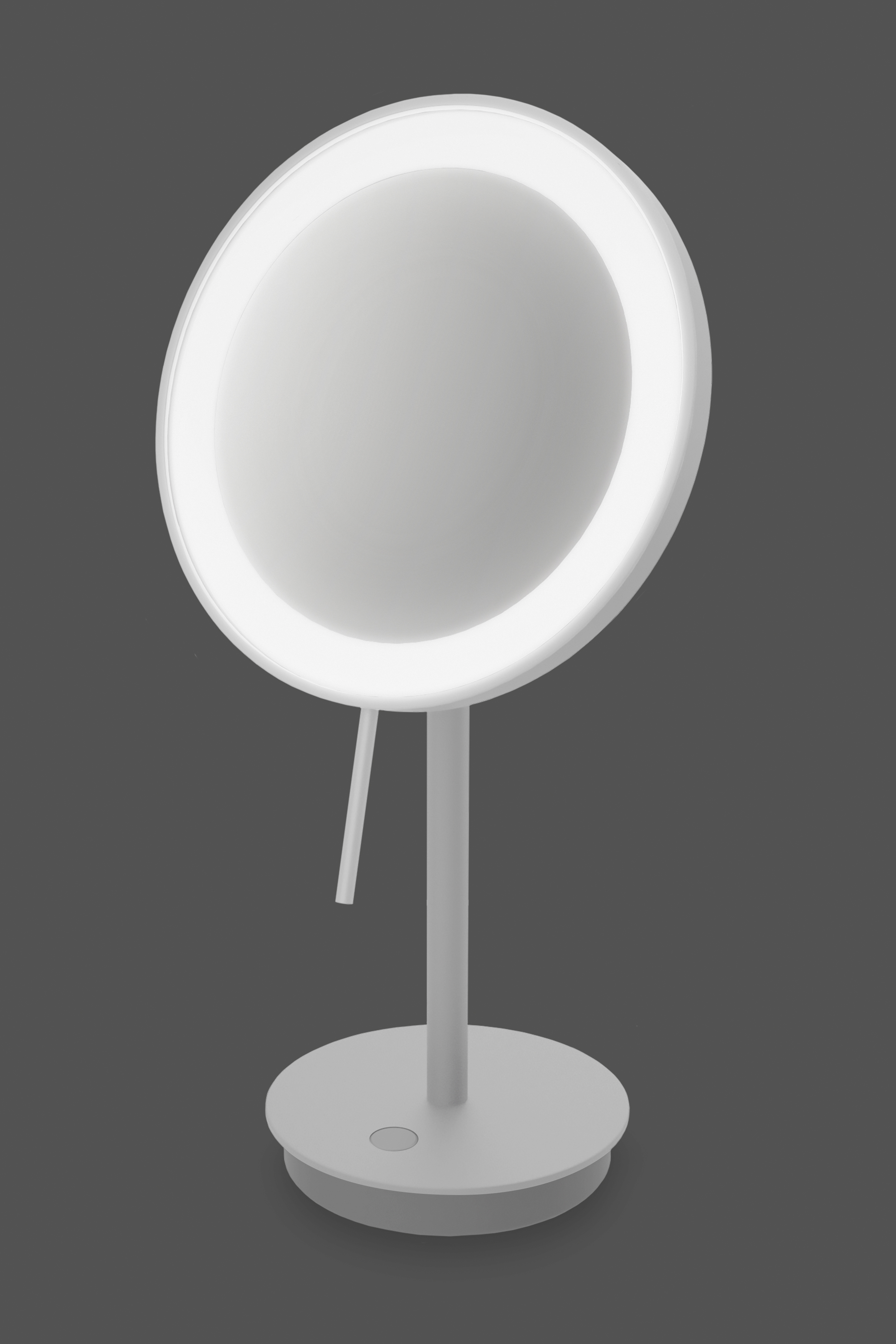 Optimale verlichting door omlopende LED-ring. Lichtintensiteit: ~ 300 LM / kleurtemperatuur: 6500 - 7000 K. Ideaal voor make-up, scheren, haarstyling en het inbrengen van contactlenzen. 5x vergroting. Sensorgestuurde aan/uit-schakelaar en kantelbare spiegel. Stabiel door gewicht in de bodemplaat en plastic pad aan de onderkant voorkomt krassen op gevoelige oppervlakken. Werkt op batterijen, 3x AA (niet inbegrepen).