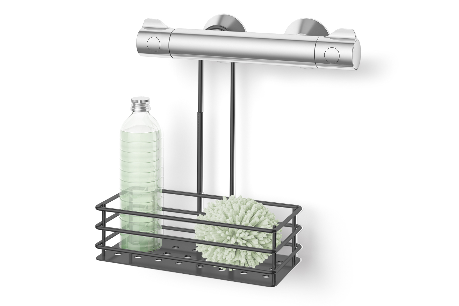 Douchekorf met zijopening voor het ophangen boven kranen, douchestangen, haken, enz. Geschikt voor diameters tot 40 mm. Eenvoudig te bevestigen zonder boren of lijmen. Afstandhouder naar de muur, voor rechte ophanging. Draadeinden zijn beschermd met plastic (siliconen, transparant) voor een veilige houvast en zacht voor oppervlakken. Ruime opbergmand biedt ruimte voor verzorgingsproducten. Veilig staan van de verzorgingsproducten door vlakke bodem. De bodem van de mand is voorzien van drainagegaten.