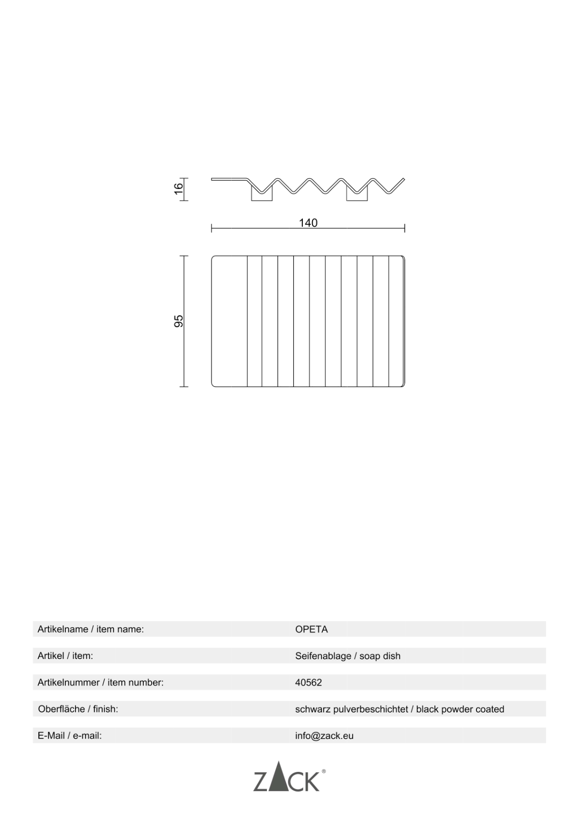 Productinformatie "OPETA" zeepbakje