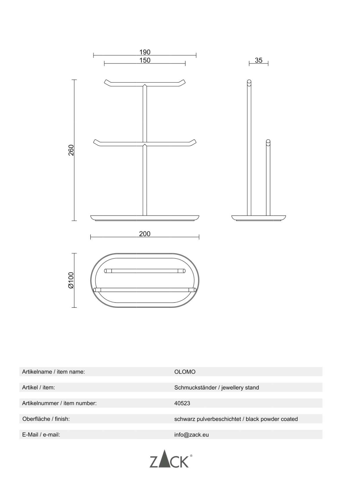 Voor het opbergen en decoratief tentoonstellen van sieraden. De sieraden zijn altijd bij de hand. Over de spijlen kunnen halskettingen, armbanden en oorbellen worden gehangen. De kom dient als plank voor kleinere sieraden en een EVA-pad aan de onderkant beschermt gevoelige oppervlakken tegen krassen.