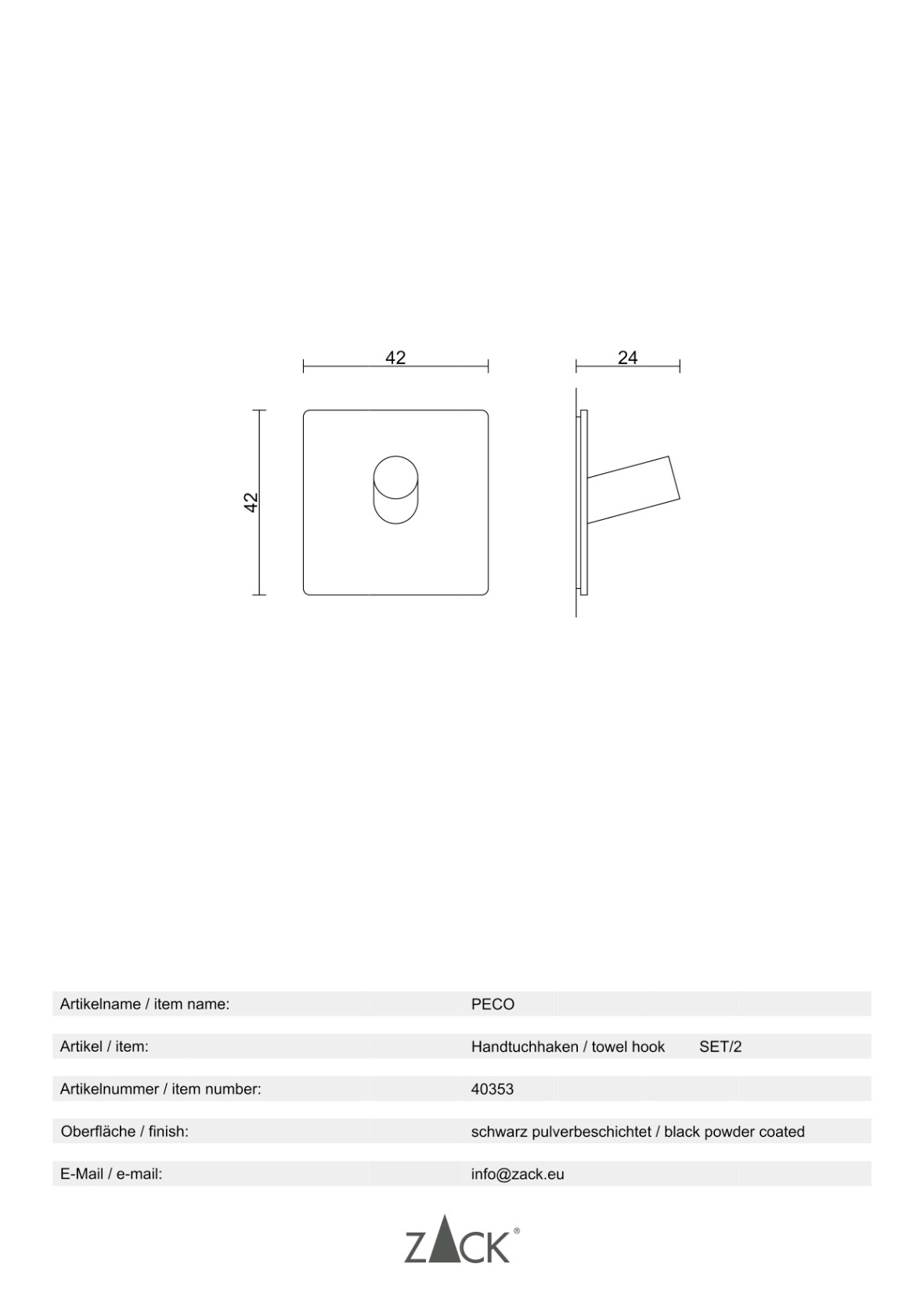 Productinformatie "PECO" handdoekhakenvierkant, 4,2 cm, set/2, zwart