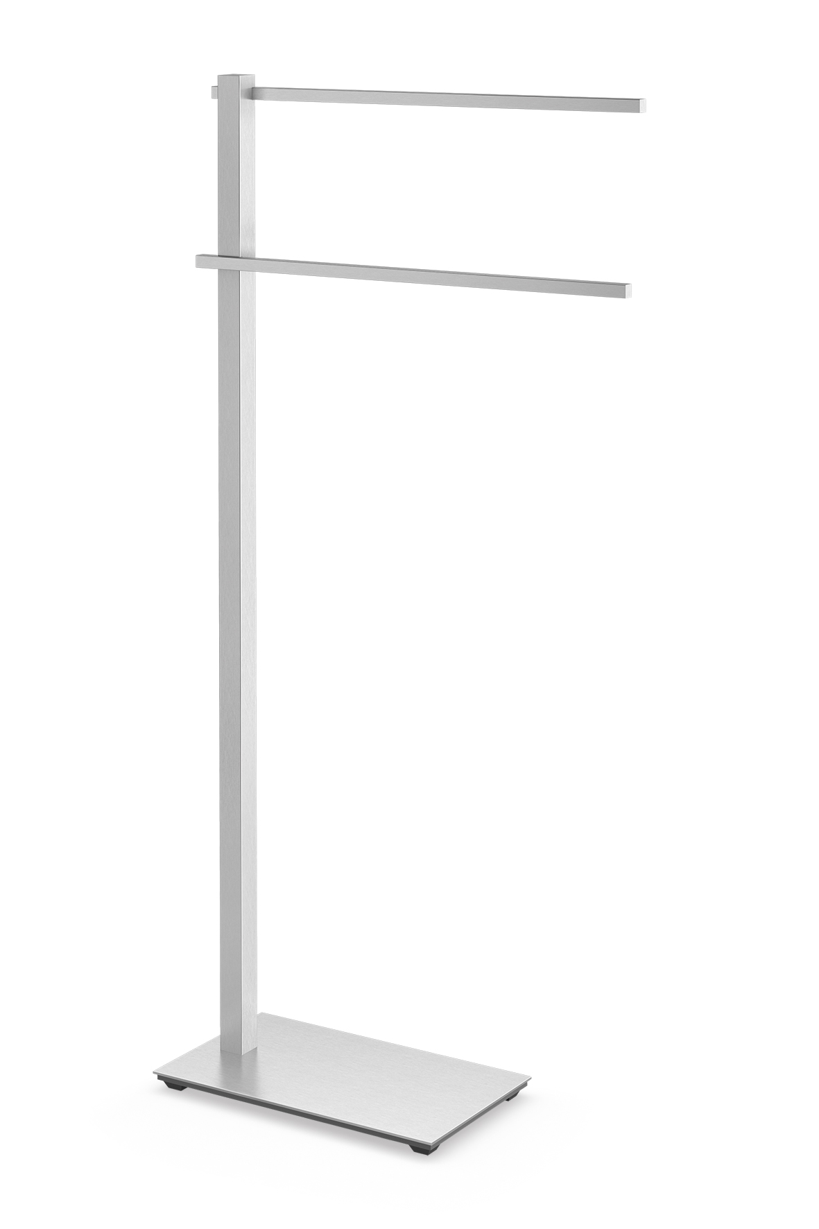 Het 2-armige handdoekenrek uit de badkamerserie "CARVO" vergemakkelijkt het ophangen van handdoeken dankzij de verschillende hoogtes van de twee steunen, die ook het snel drogen van de handdoeken ondersteunen. De zware voetplaat van het handdoekenrek zorgt voor een stevige stand. Rubberen voetjes voorkomen mogelijke krassen op gevoelige vloeren.