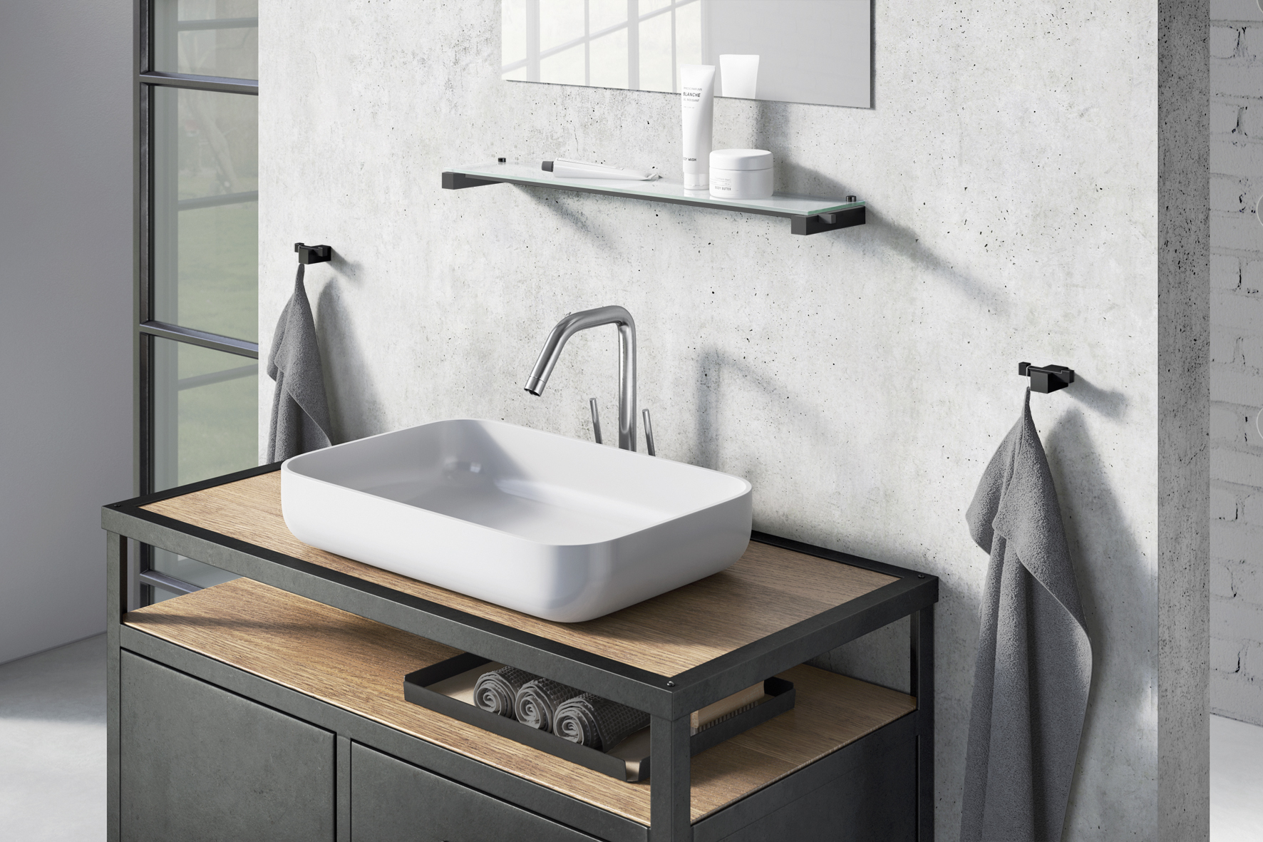 Met heldere lijnen en gepaste lichtheid leidt de CARVO badkamerserie zijn gebruiker door de dag.