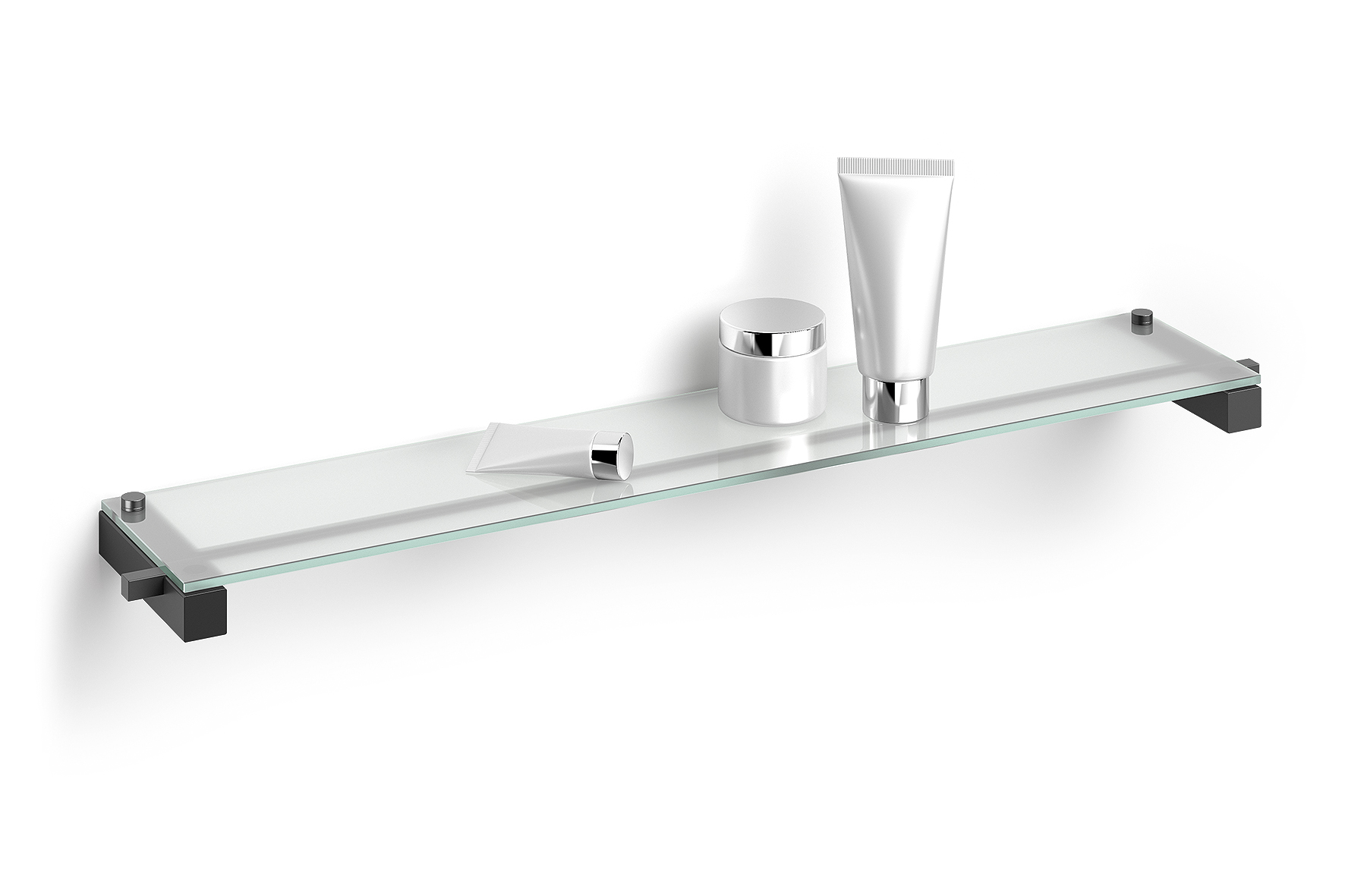 De legplank van gehard glas is stevig bevestigd aan de twee steunen en het gladde oppervlak is gemakkelijk schoon te maken.