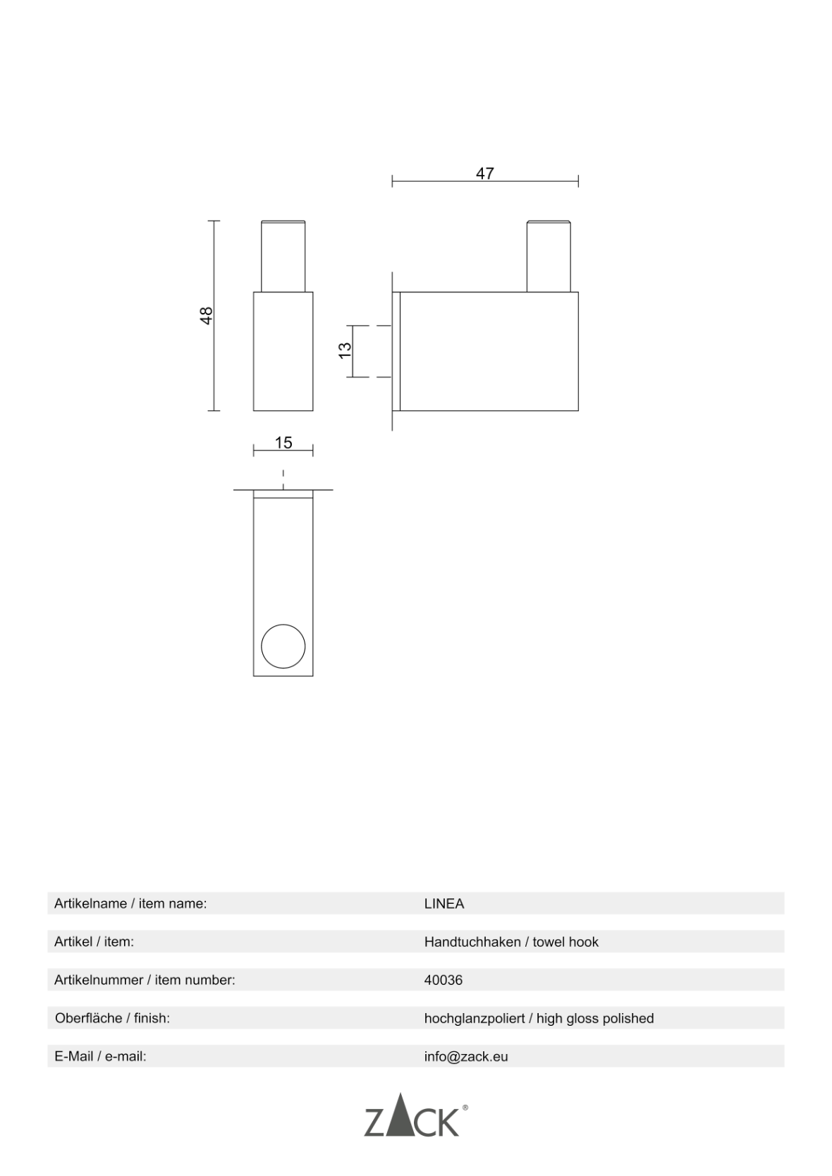 - Andere aanvullende accessoires van de ZACK-designserie ‘LINEA’ zijn verkrijgbaar