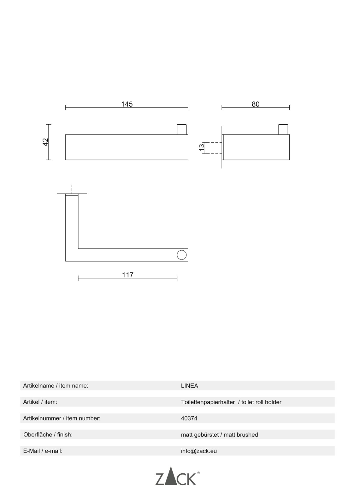 - Andere aanvullende accessoires van de ZACK-designserie ‘LINEA’ zijn verkrijgbaar
