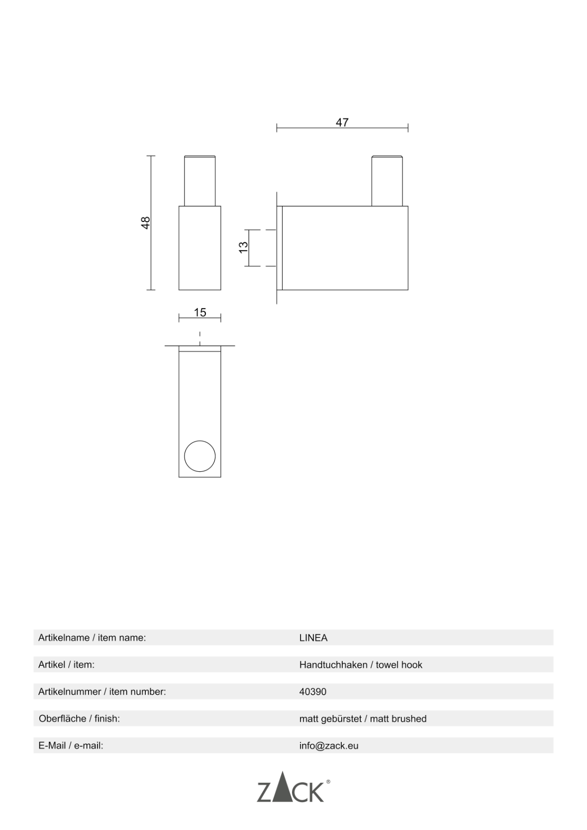 - Andere aanvullende accessoires van de ZACK-designserie ‘LINEA’ zijn verkrijgbaar
