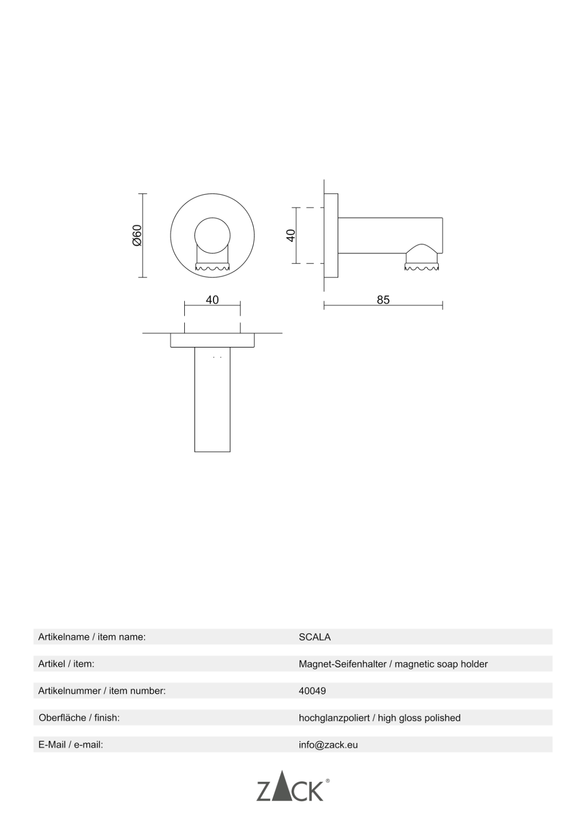 - Meer bijpassende accessoires in de ZACK Design-serie ‘SCALA’ zijn verkrijgbaar