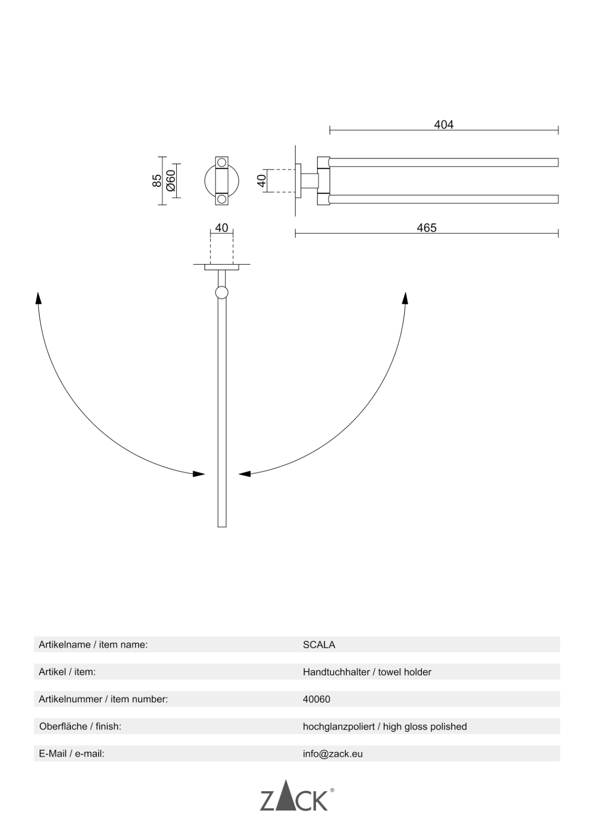 Productinformatie "SCALA" handdoekhouder, draaibaar