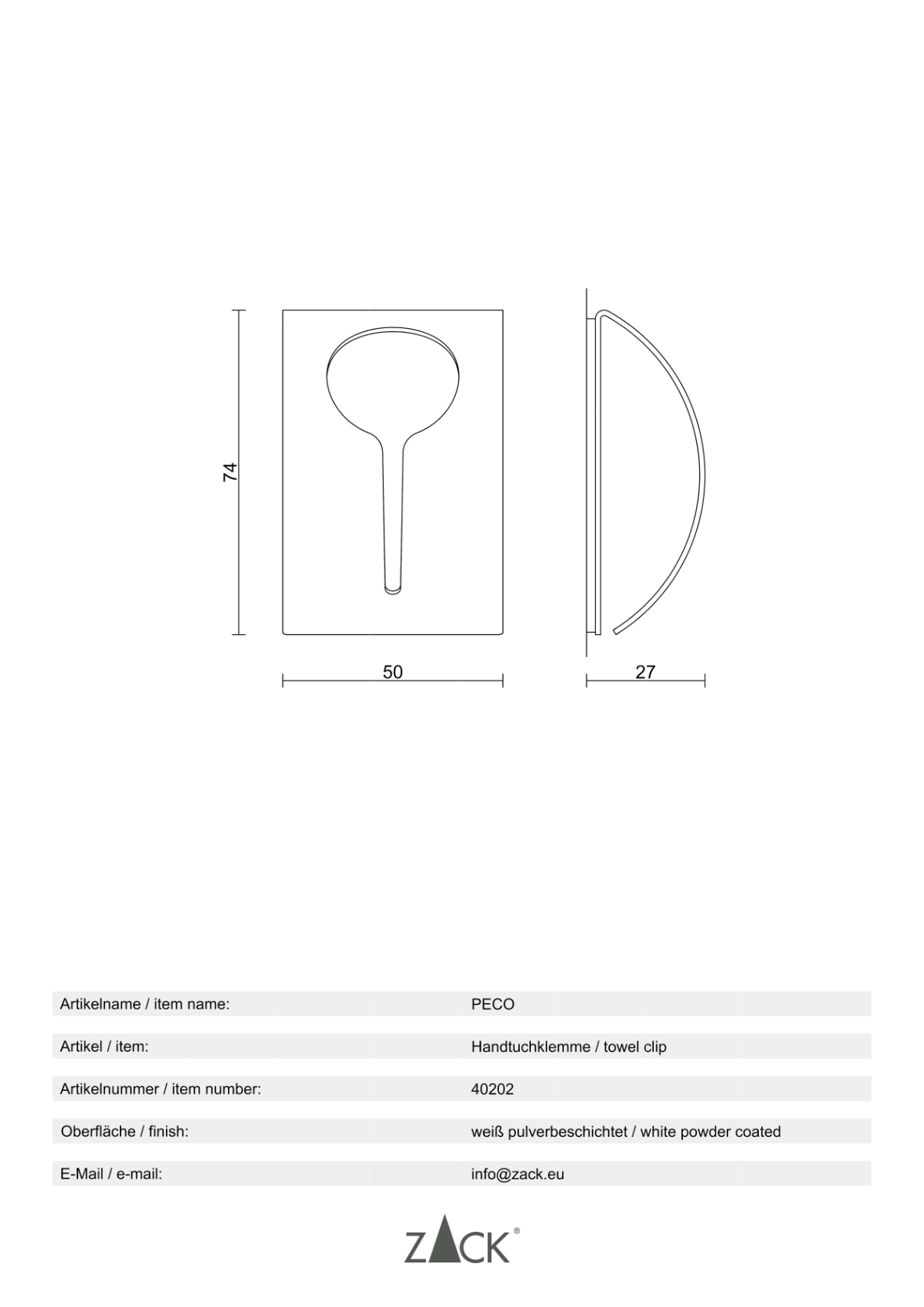 Productinformatie "PECO" handdoekklem, W