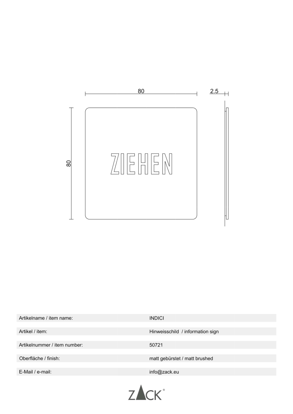 Produktinformationen "INDICI" Hinweisschild "Ziehen"