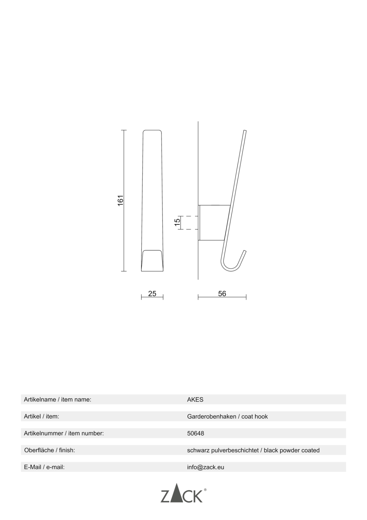 Produktinformationen "AKES" Garderobenhaken, B