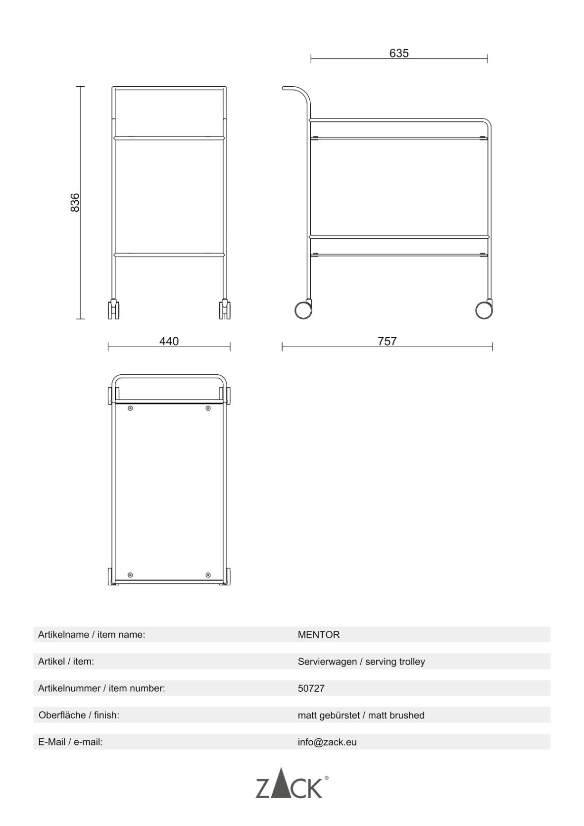 Produktinformationen "MECOR" Servierwagen